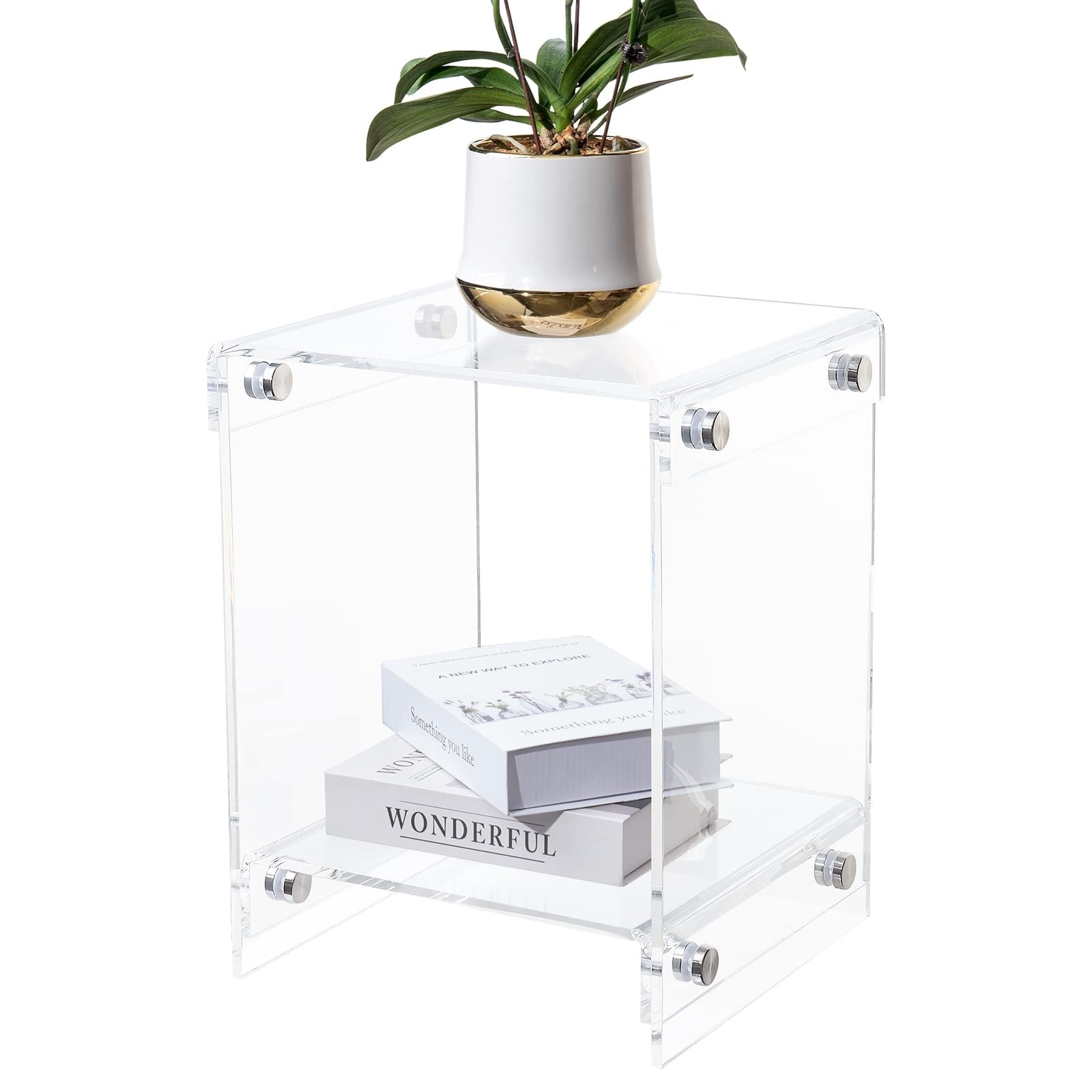 Acrylic Small Frame Side Table/End Table/Easy Assembly, Nightstand for Living Room Bedroom Home Decor- Clear