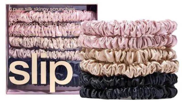 Slip Silk Skinnie Scrunchies in Black, Pink, and Caramel - Elastic Scrunchies Set (6 Scrunchies)