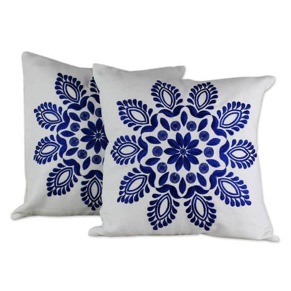 Handmade Set of 2 Cotton 'Blue Delhi Splendor' Cushion Covers (India)