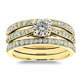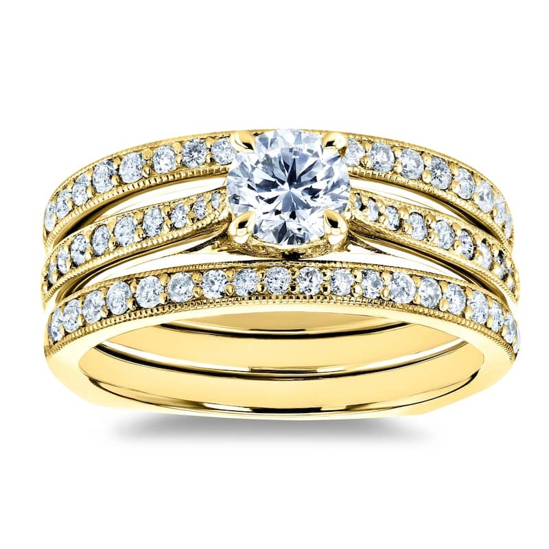 Annello by Kobelli 14K Gold 1ct TGW Round Moissanite and Diamond Square Euro Shank Vintage Trellis 3 Piece Bridal Set