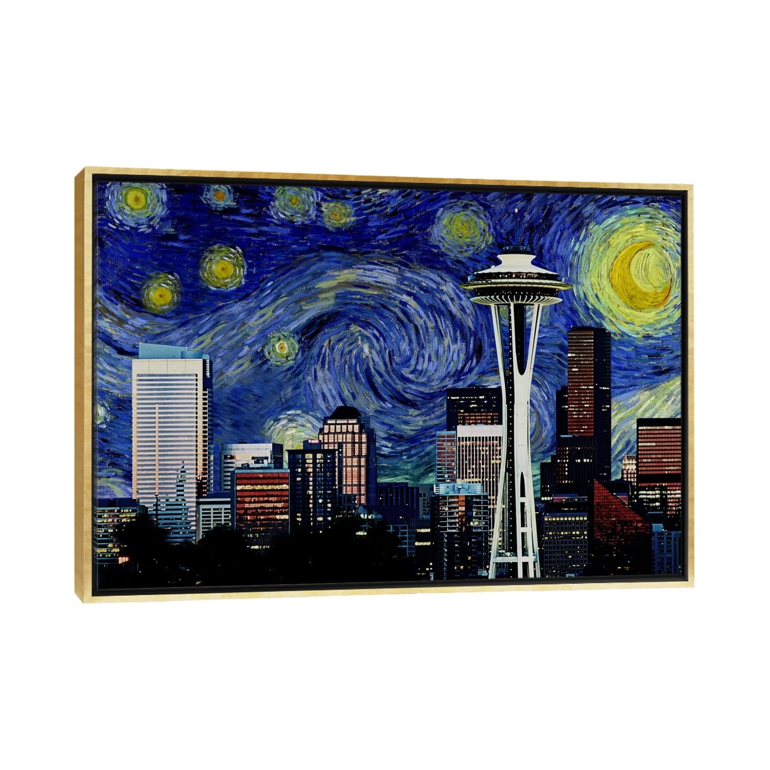 iCanvas "Seattle, Washington Starry Night Skyline" by 5by5collective Framed Canvas Print