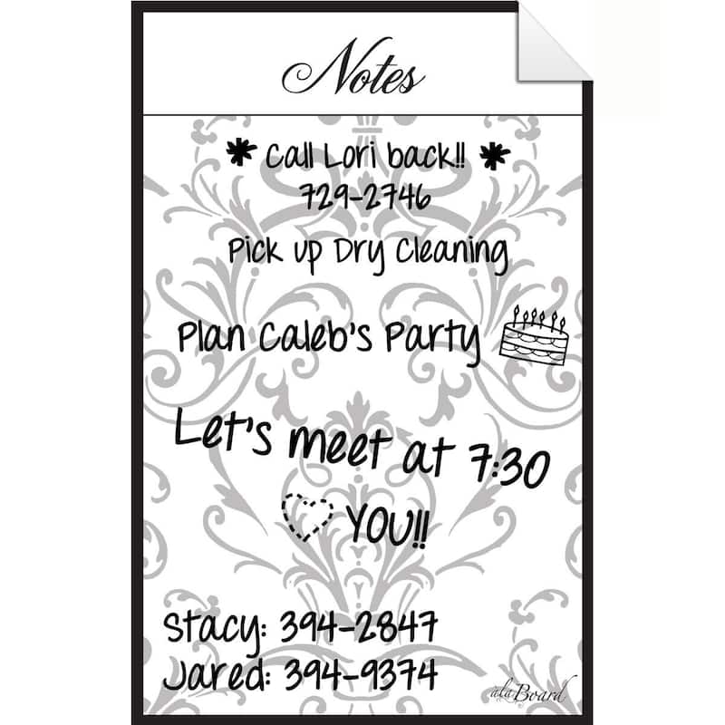 Grey Damask Dry Erase Peel and Stick Message Decal