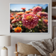 Designart "Colorful Zinnias Field At Sunrise III" Zinnias Framed Canvas Prints