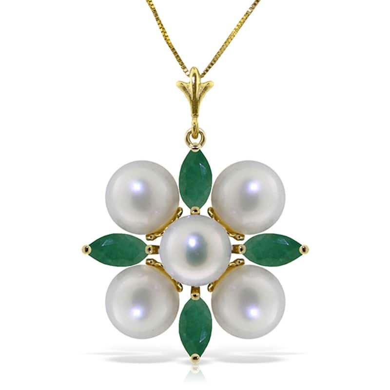 6.3 Carat 14K Solid Gold It Takes Two Emerald pearl Necklace