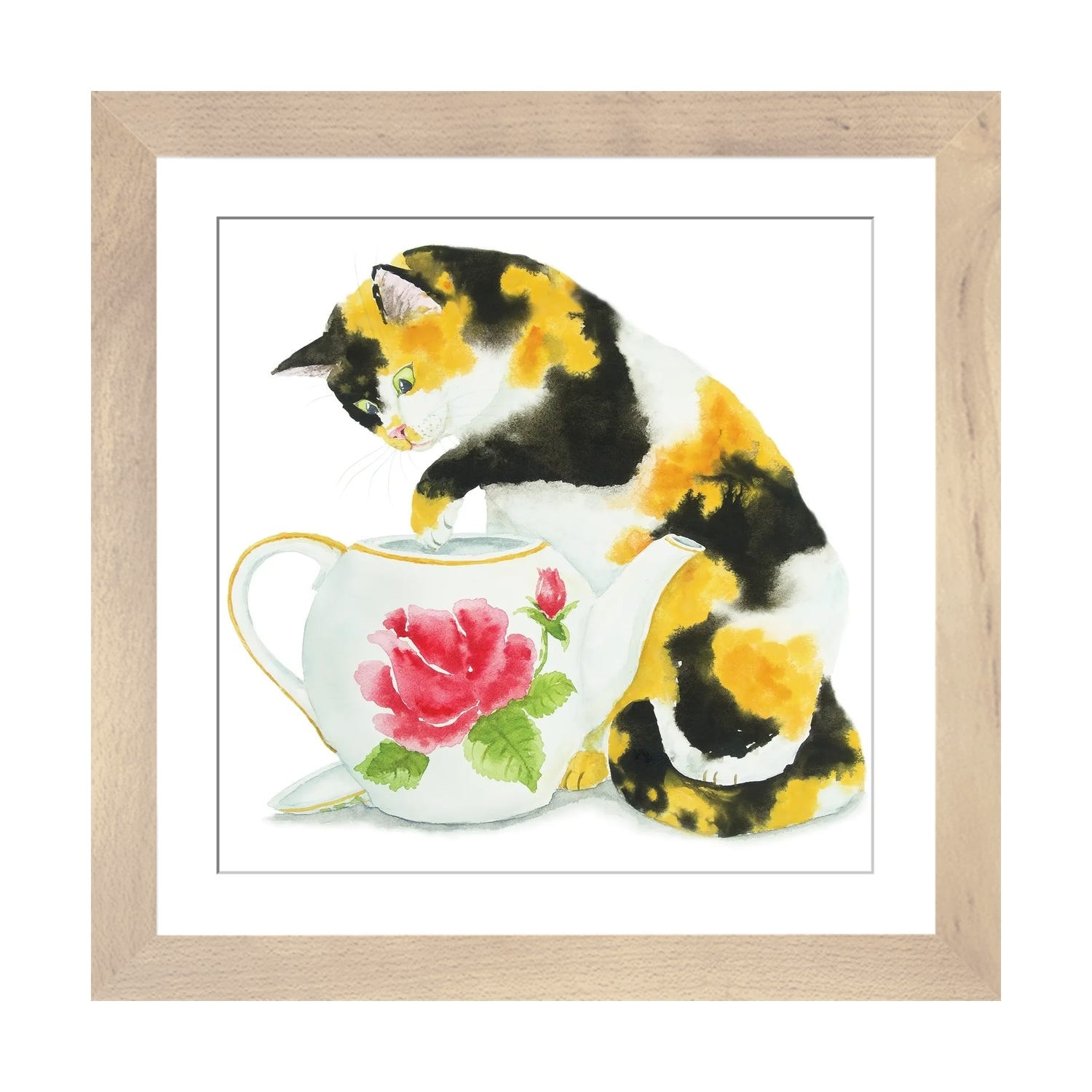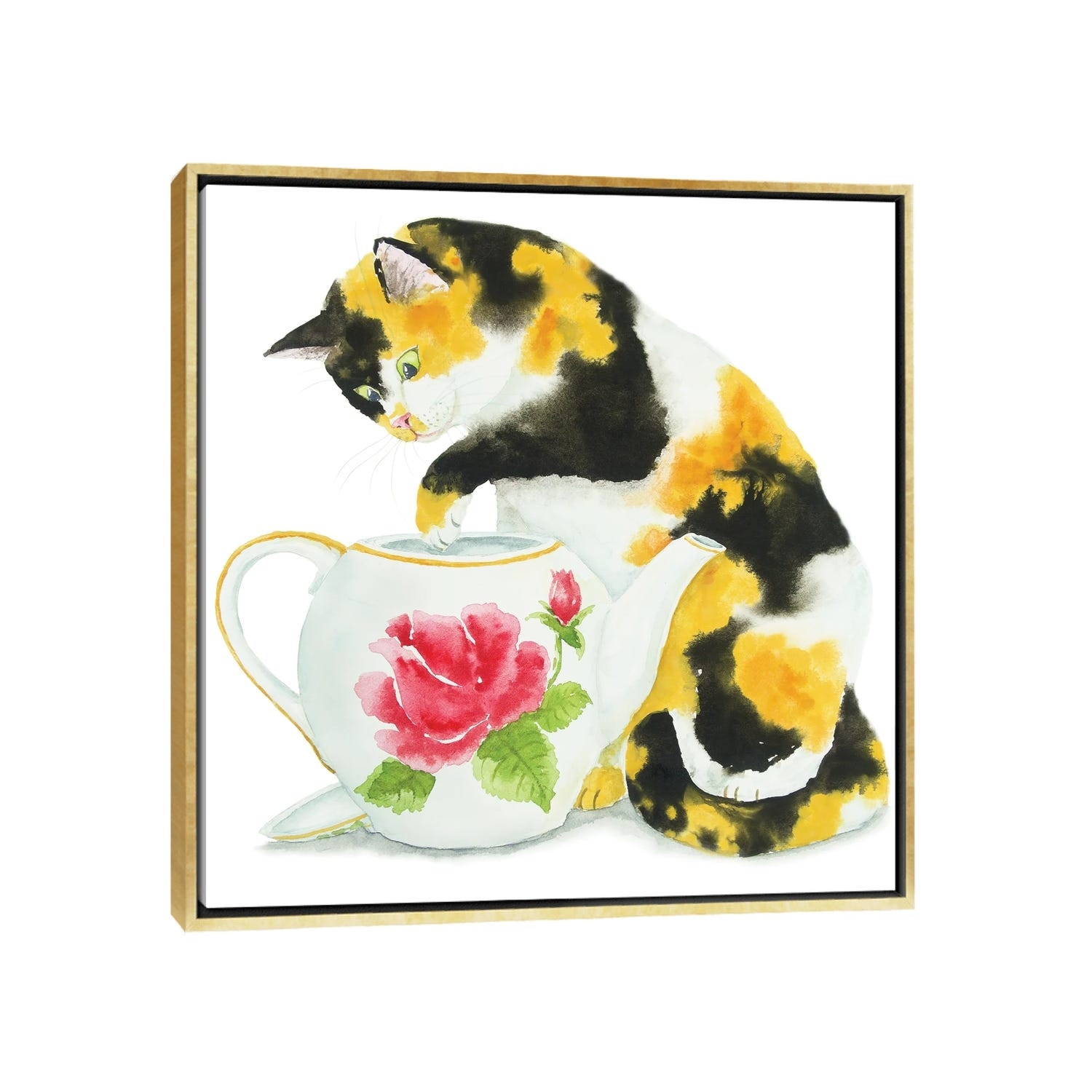 iCanvas "Calico Cat And Teapot" by Alexey Dmitrievich Shmyrov Framed Canvas Print