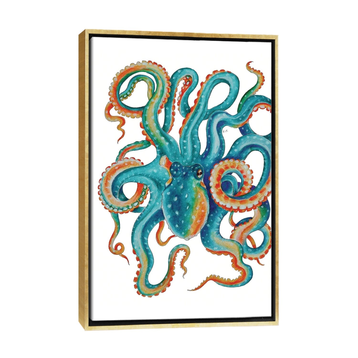 iCanvas "Octopus Teal Tentacles Watercolor Art" by Seven Sirens Studios Framed Canvas Print