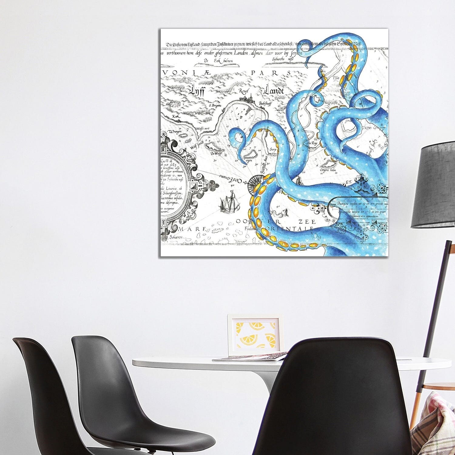 iCanvas "Tentacles Octopus Blue Watercolor Nautical Map" by Seven Sirens Studios Canvas Print