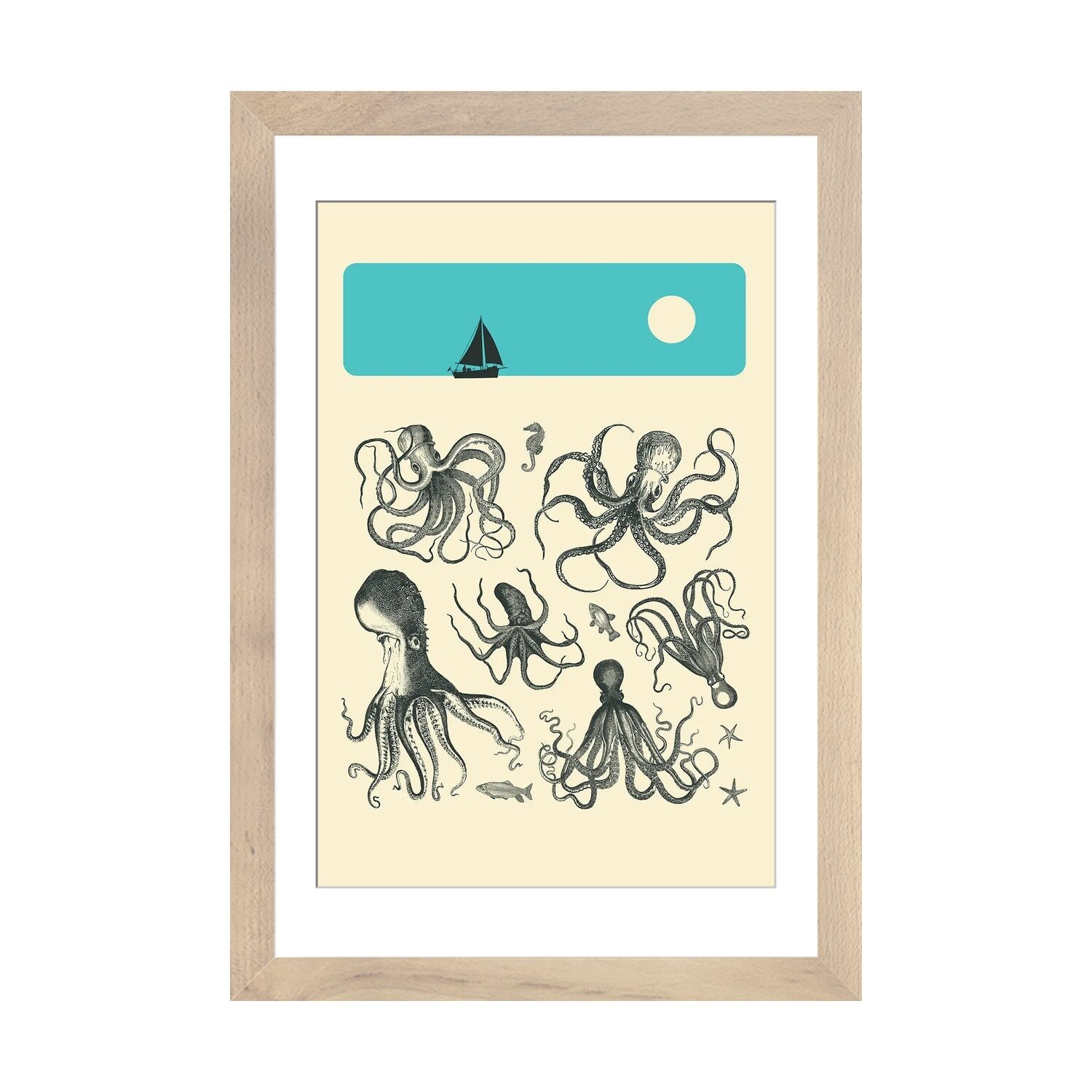 Octopus Tentacles, Blue & White Print on Wood by Fab Funky - Multi-Color