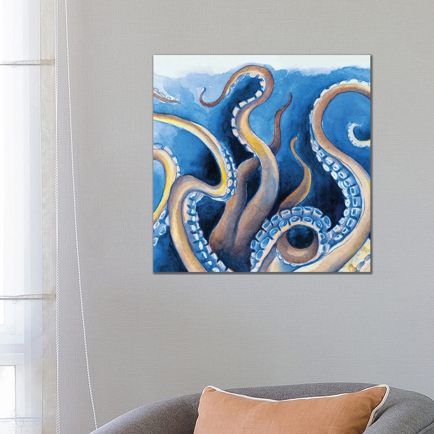 iCanvas "Blue Yellow Tentacles Watercolor" by Seven Sirens Studios Canvas Print