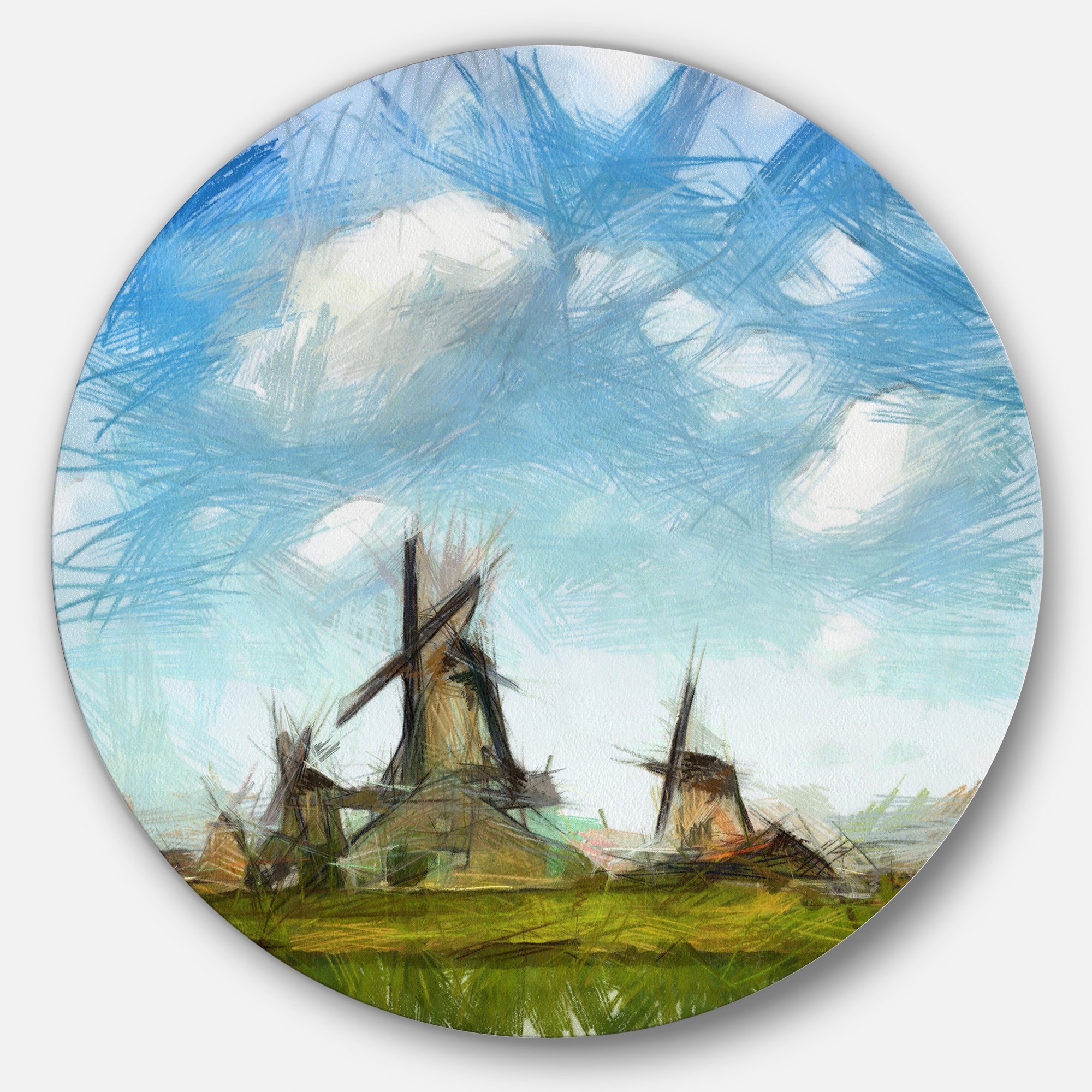Designart 'Watercolor Windmill in Netherlands' Large Landscape Metal Wall Art