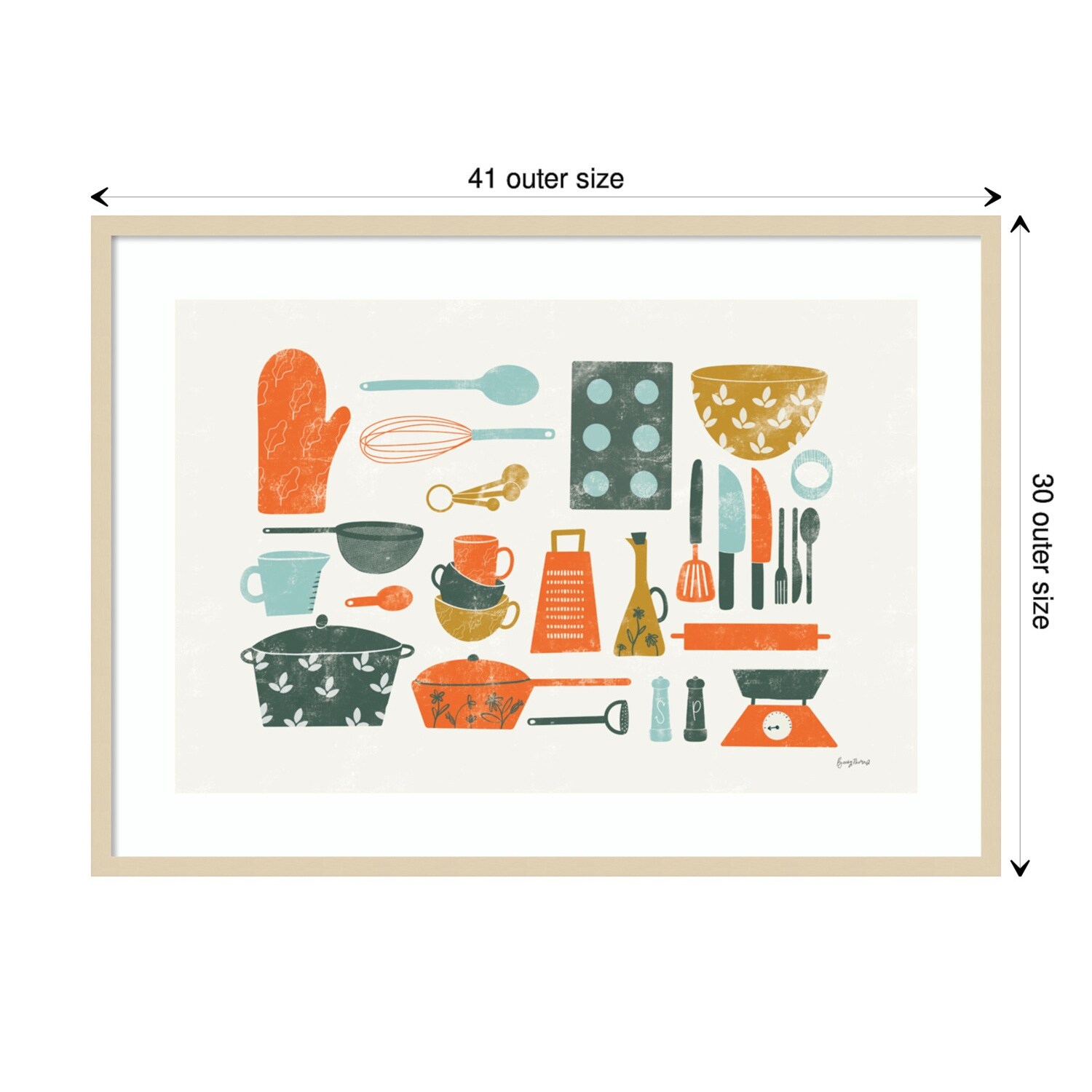 Retro Kitchen I by Becky Thorns Wood Framed Wall Art Print - Svelte Natural
