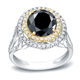 Auriya 14k Two-tone Gold 2 1/4ctw Double Halo Black Diamond Engagement Ring (H-I, SI1-SI2)