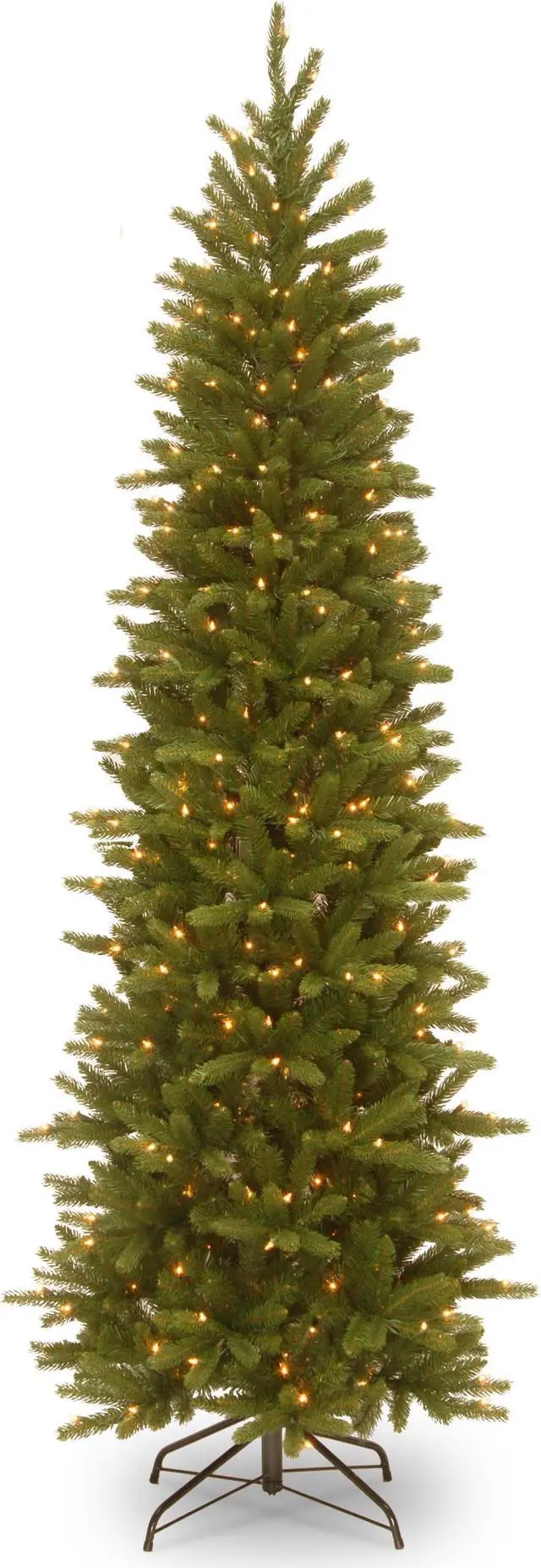 National Tree Company PEJF130490 9 ft. Pre-Lit Jersey Fraser Fir Slim Tree - 57" x 57" x 108" - Green Tree, Green Tree Stand