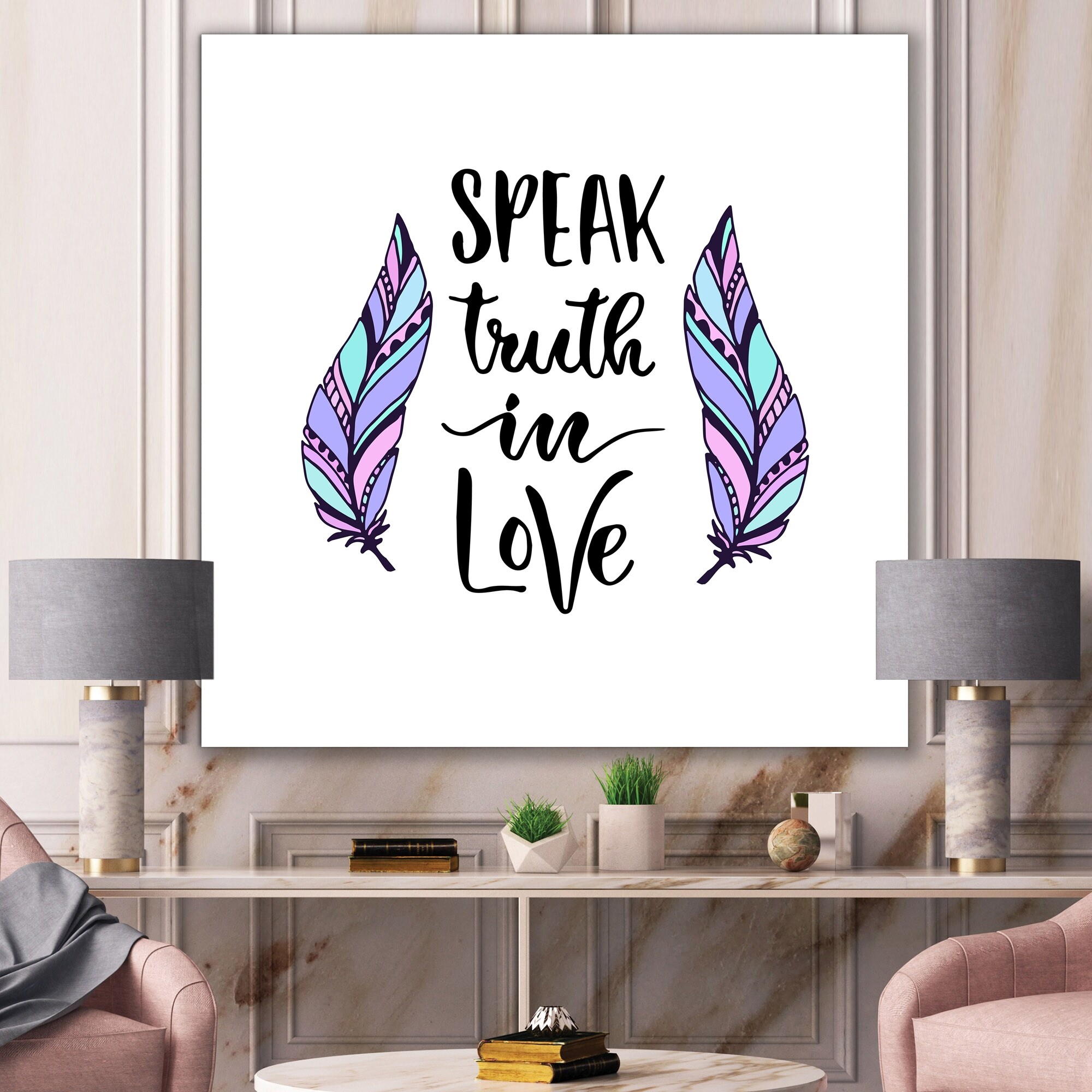 Designart "Spreak Truth in Love Tribal Feathers I" Modern & Contemporary Canvas Wall Art Print