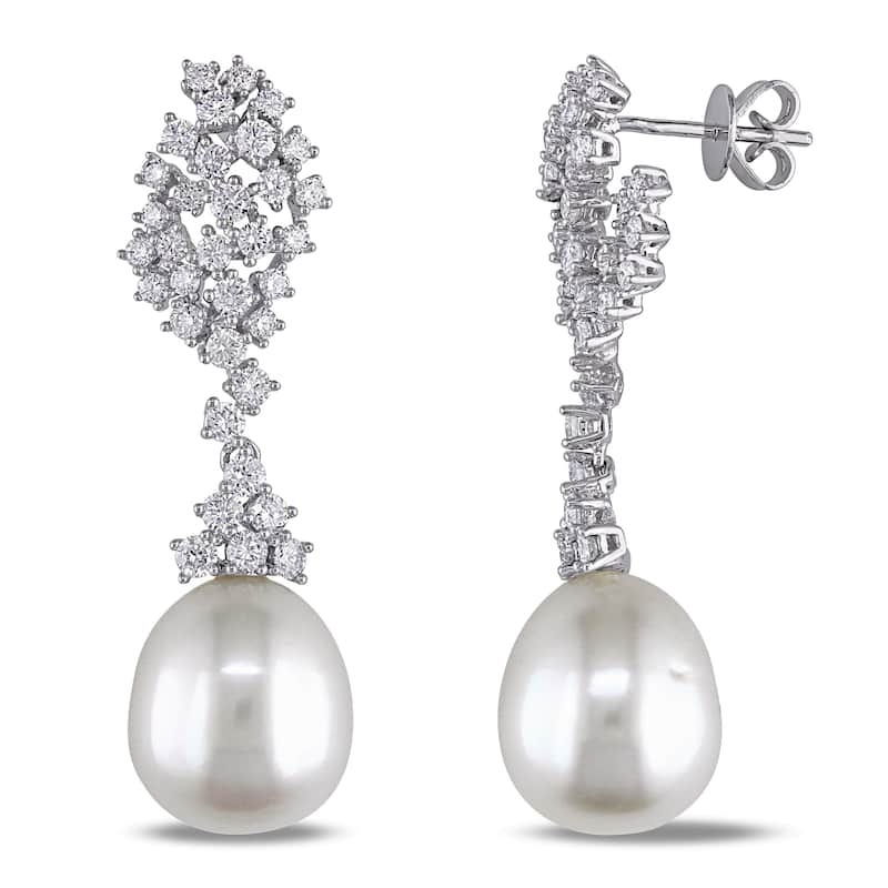 Miadora 14k White Gold South Sea Pearl and 2ct TDW Diamond Earrings (G-H, SI1-SI2) (11.5-12MM)