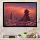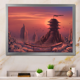 Designart "Video Game Fantasy Buddhist Temple Sunset" Industrial Framed Wall Art