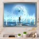 Designart "Video Game Man Lost in Mystic River" Abstract Framed Canvas Wall Art