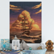 Designart 'Video Game Fantasy Ship Coastal Sunset' Nautical & Coastal Wood Wall Art Décor - Natural Pine Wood