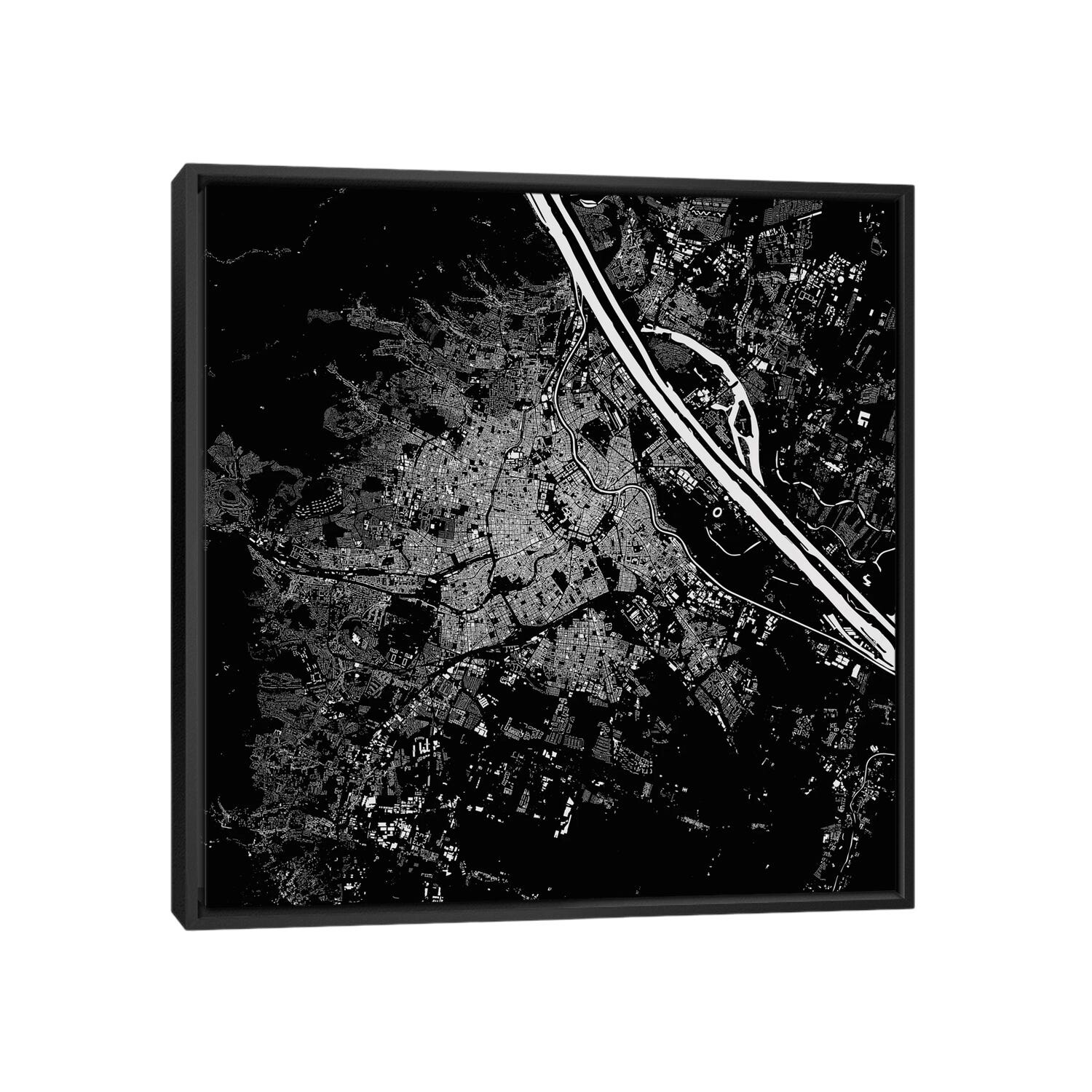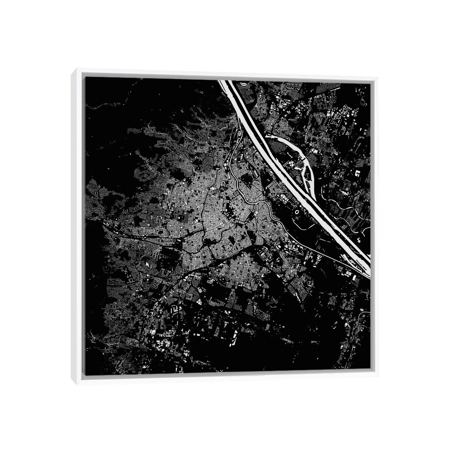 iCanvas "Vienna Urban Map (Black)" by Urbanmap Framed Canvas Print