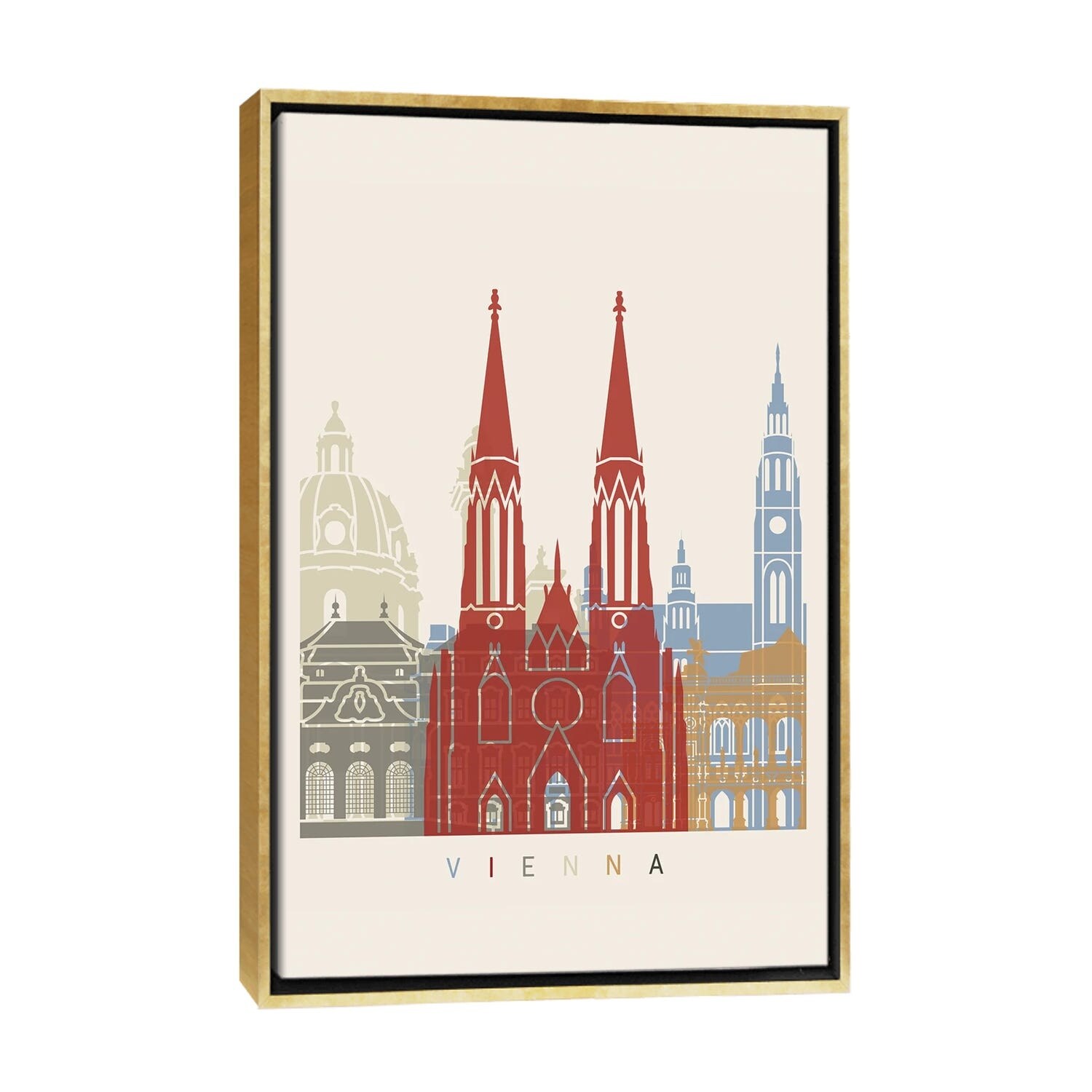iCanvas "Vienna Skyline Poster" by Paul Rommer Framed Canvas Print