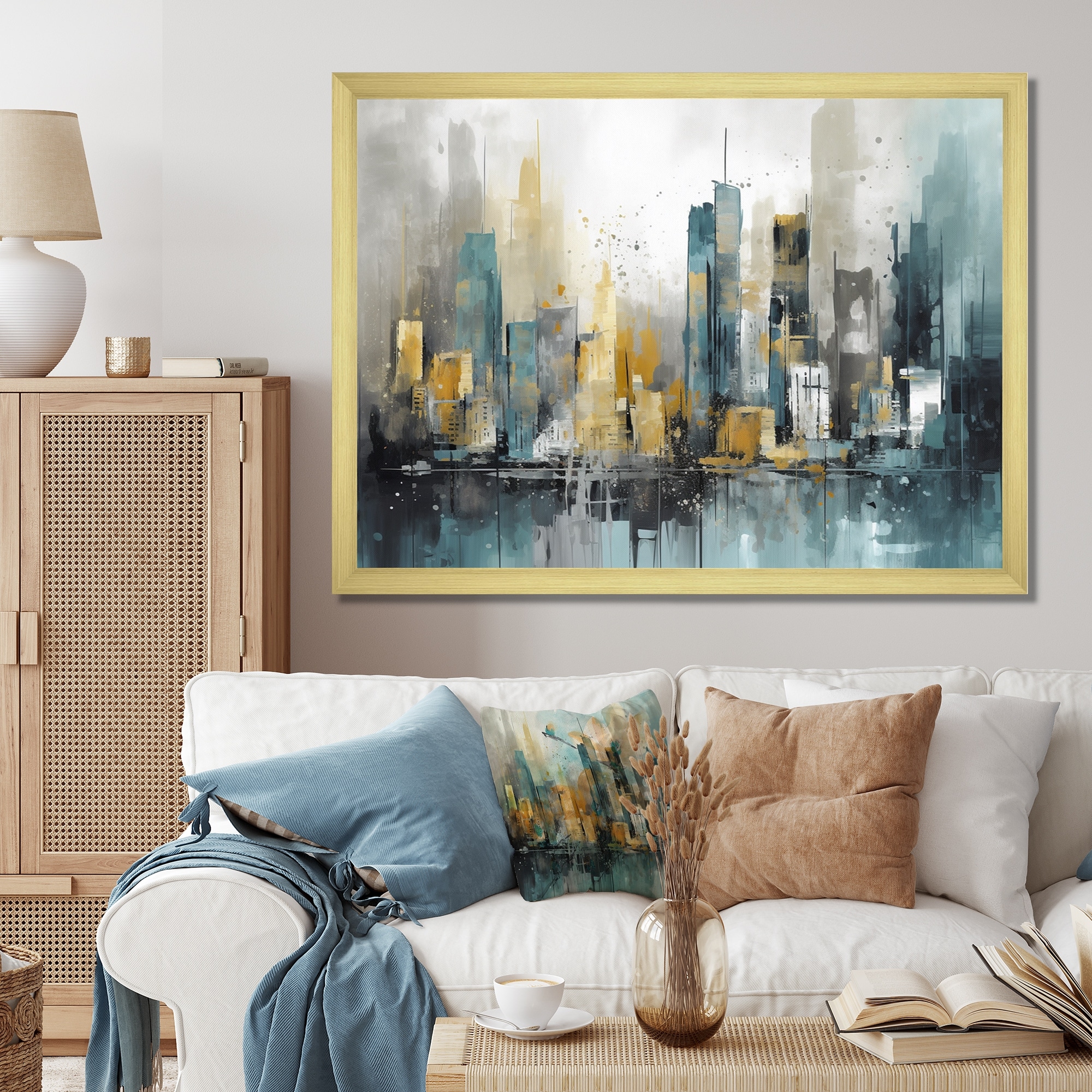 Designart "Blue And Yellow Elegance in Expanse I" City Art Deco Canvas Wall Art