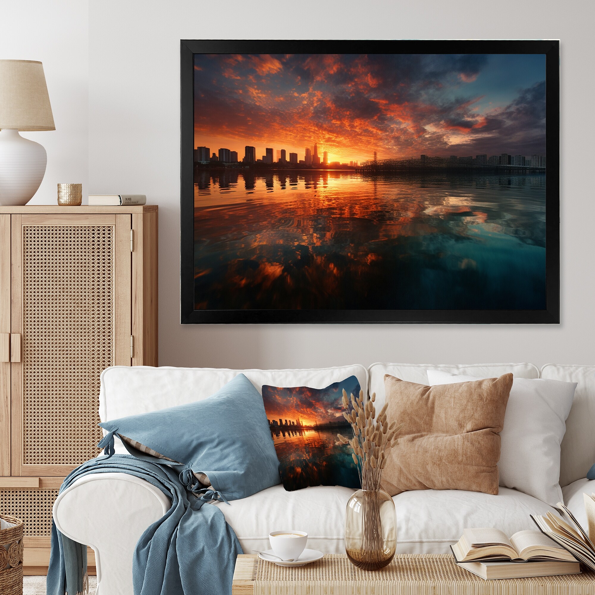 Designart "Blue And Pink Elegance in Expanse" City Art Deco Framed Canvas Wall Art