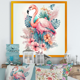 Designart "Pink Flamingo With Pink Flowers Watercolour II" Animals Flamingo Framed Art Print