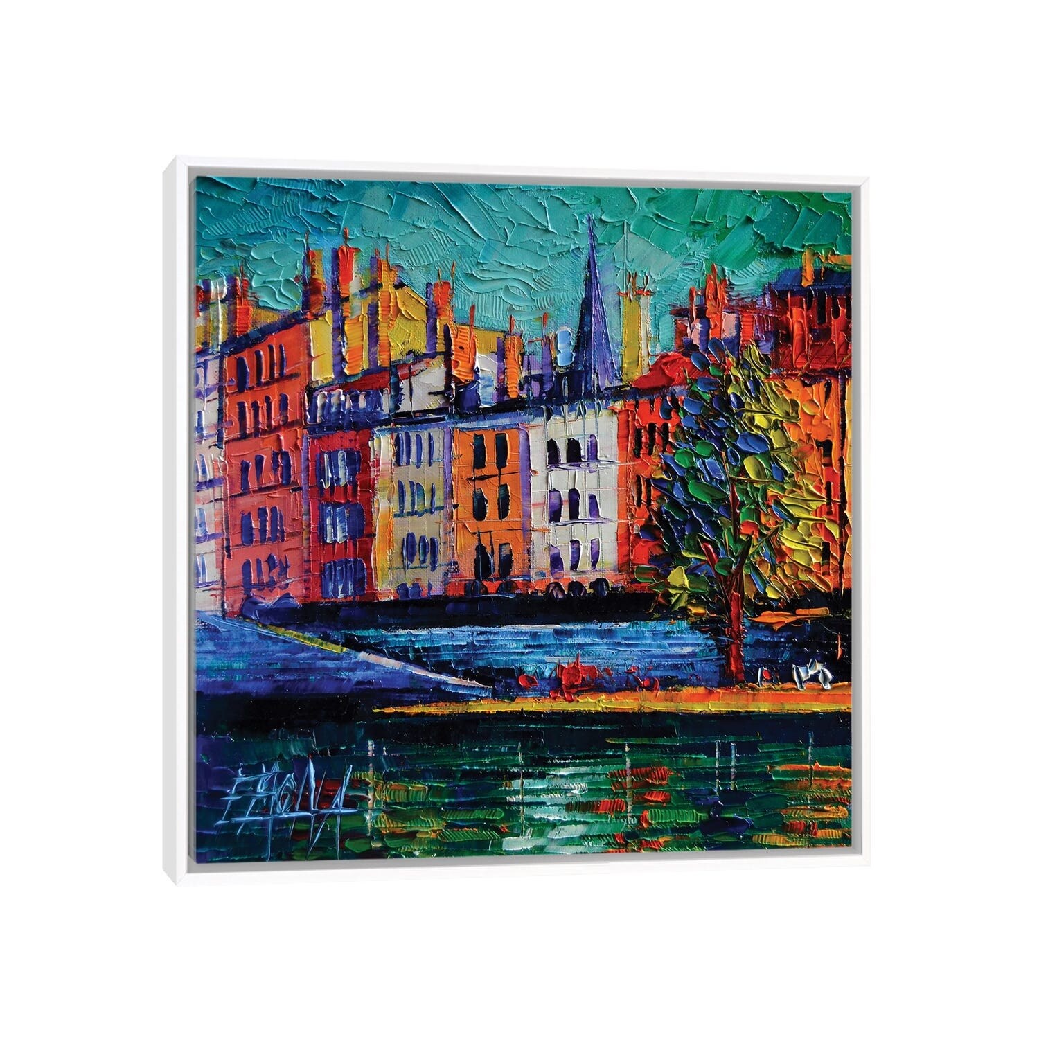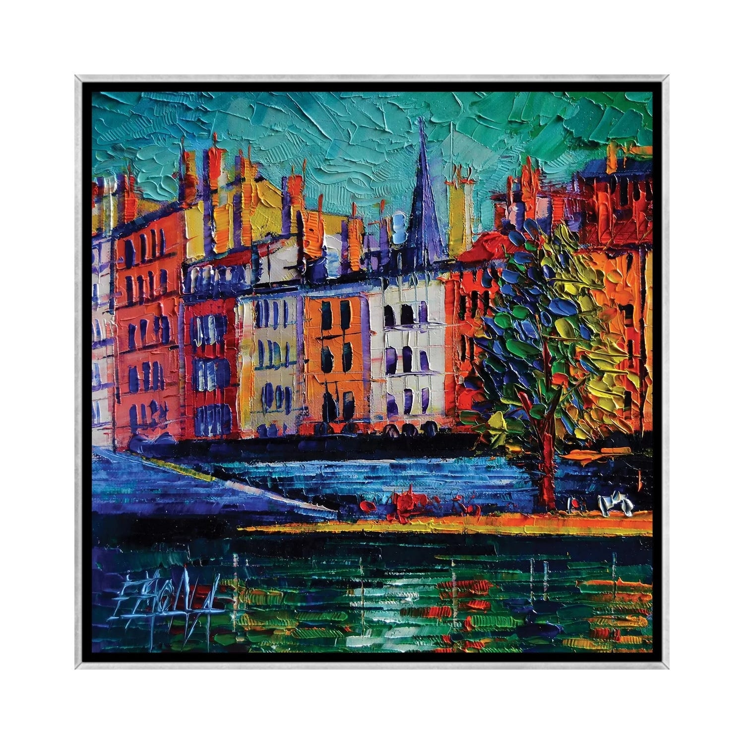 iCanvas "Colorful Waterfront in Lyon France" by Mona Edulesco Framed Canvas Print