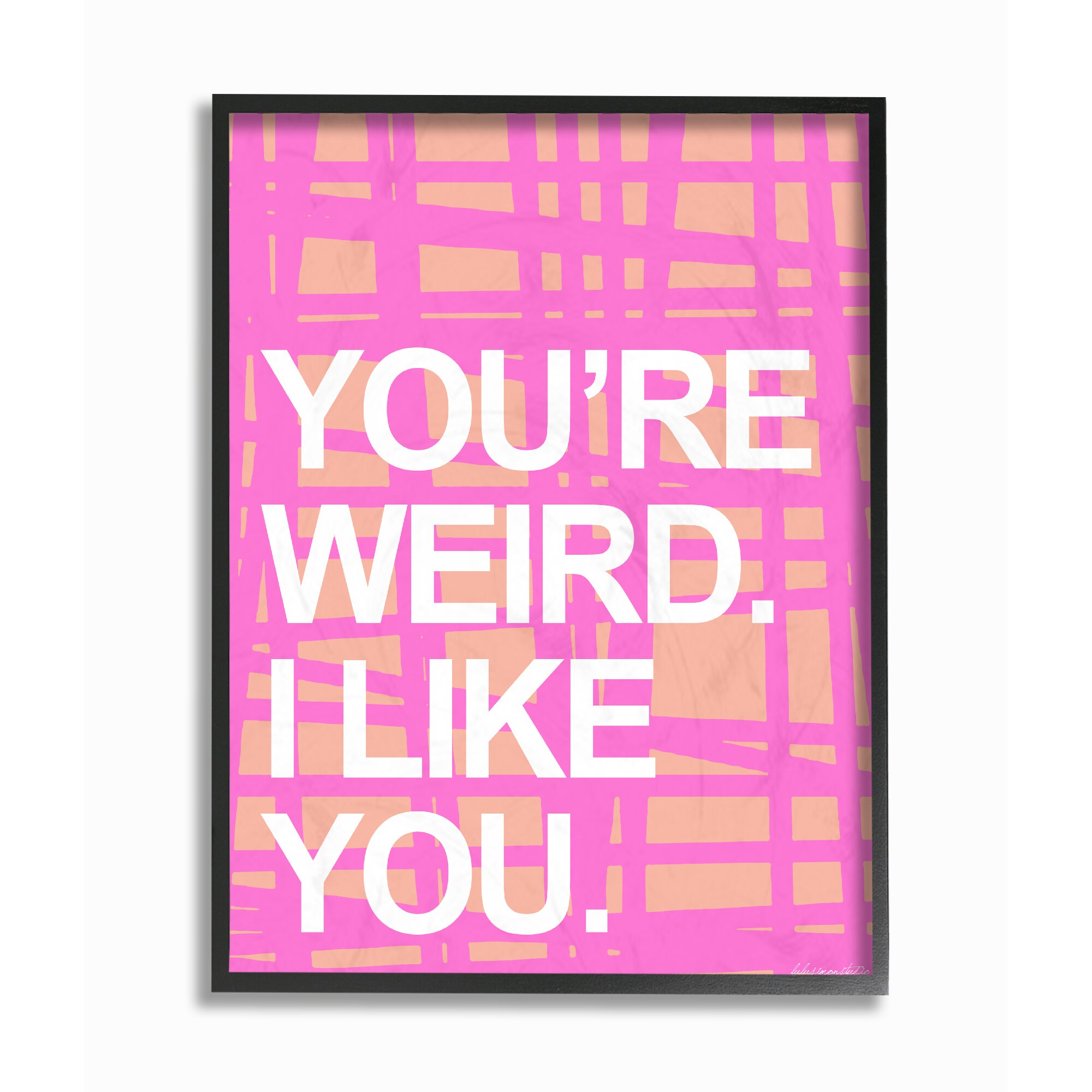 lulusimonSTUDIO You're Weird. I Like You Pink/Orange Grid Framed Giclee Art