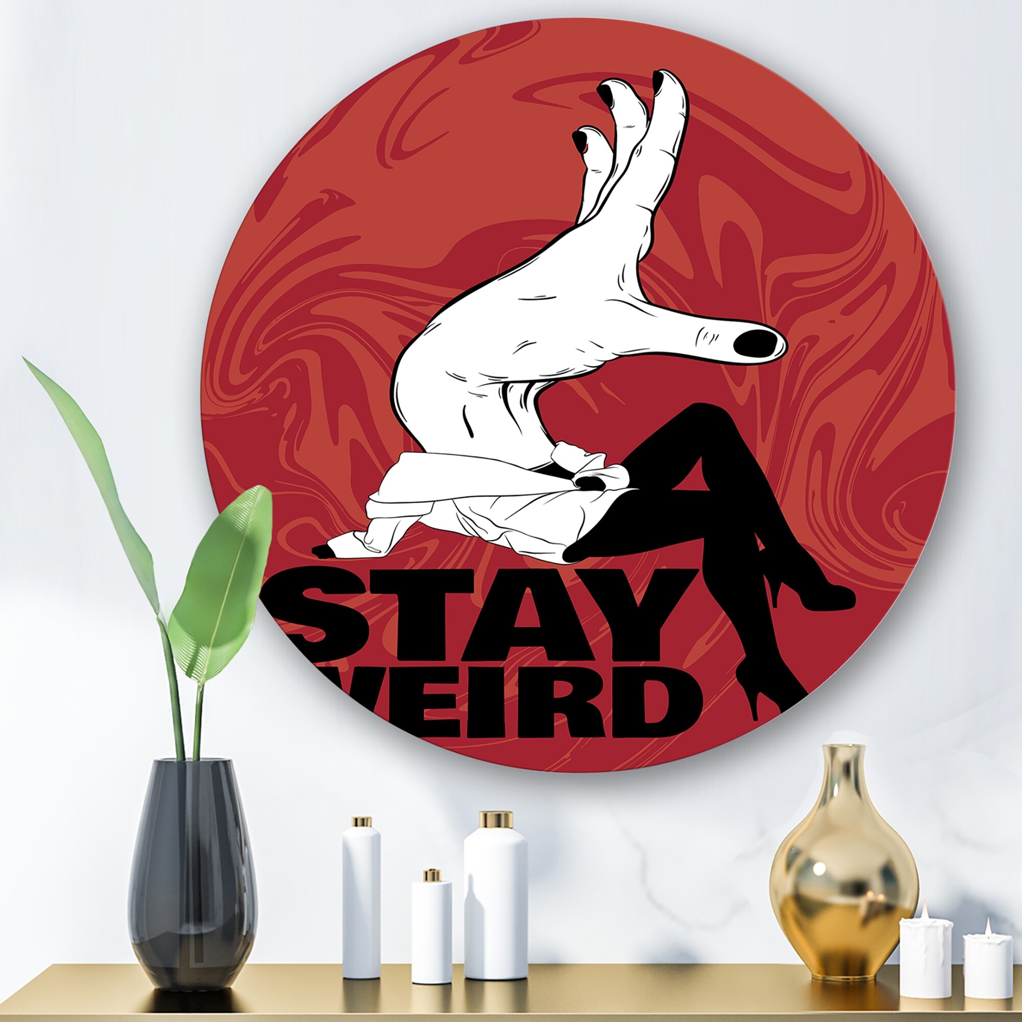 Designart 'Stay Weird' Vintage Metal Circle Wall Art