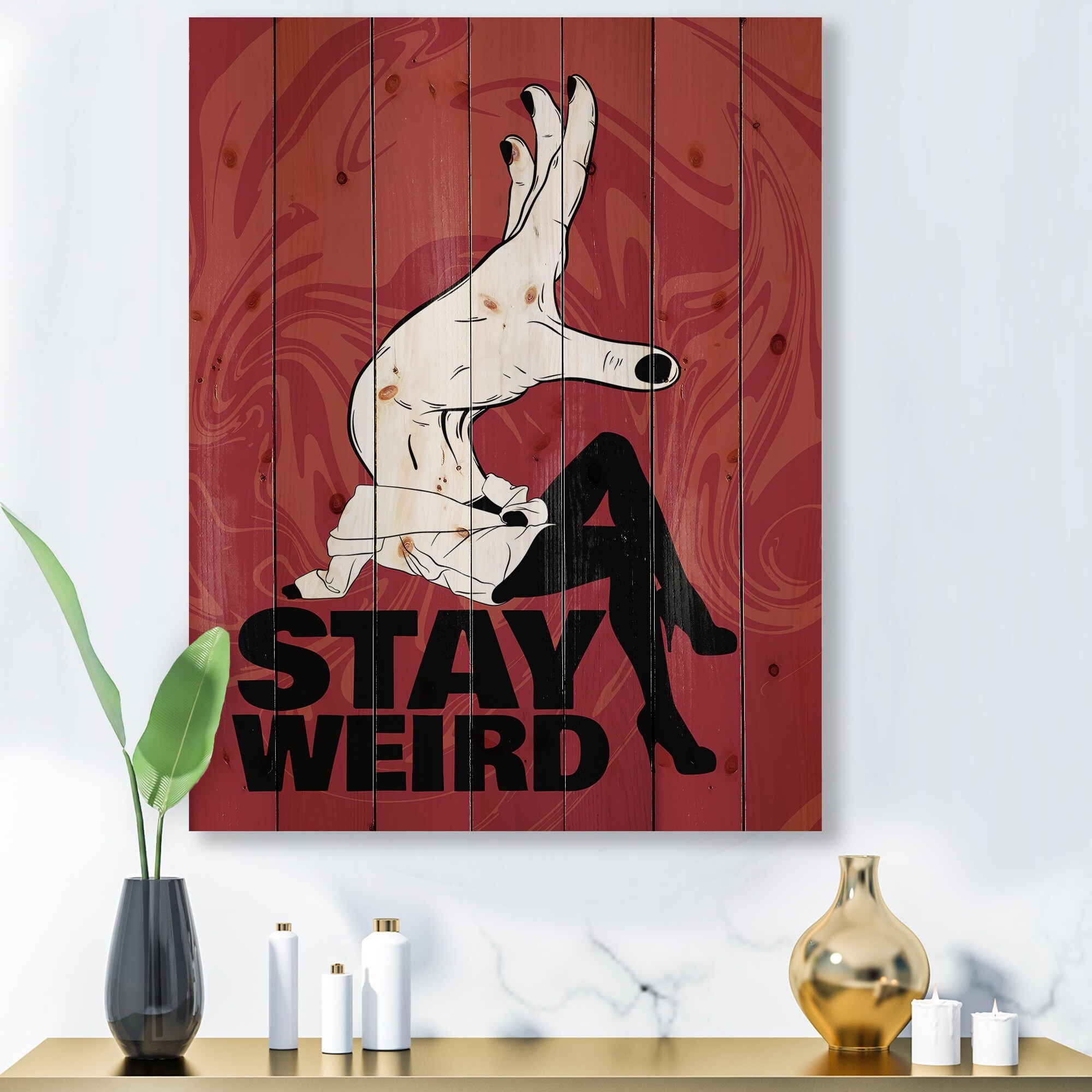 Designart 'Stay Weird' Vintage Print on Natural Pine Wood