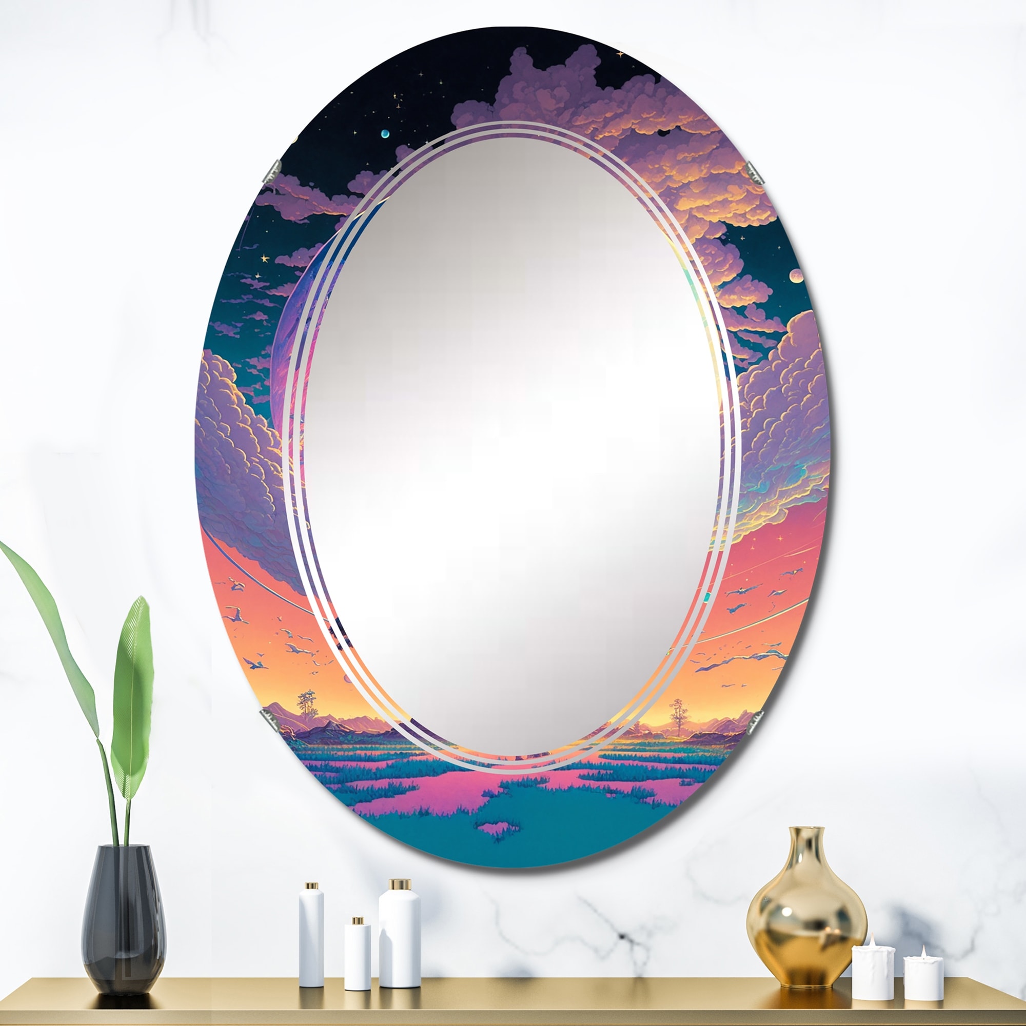 Designart 'Majestic Tree of Wisdom in Pastel' Printed Landscape Forest Wall Mirror