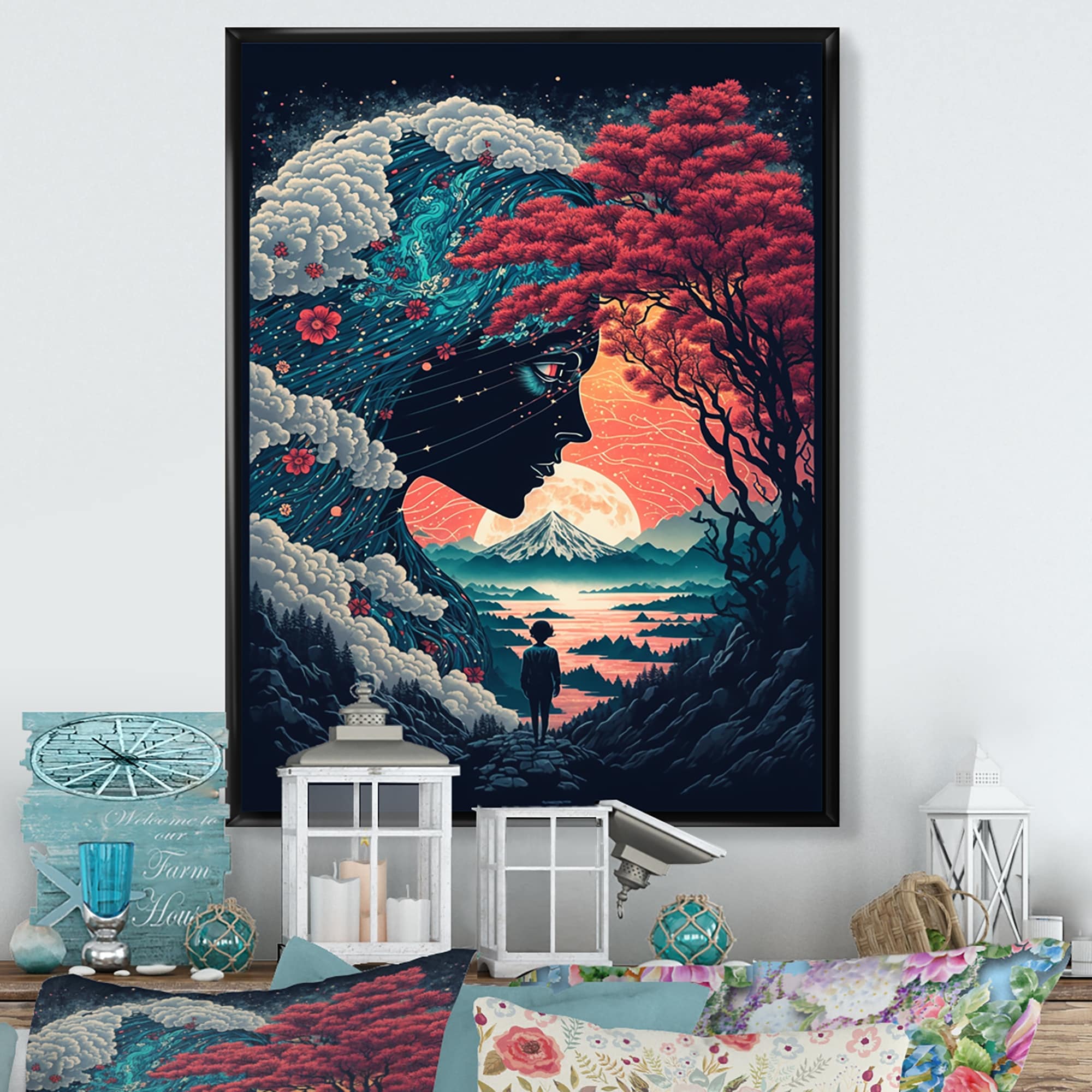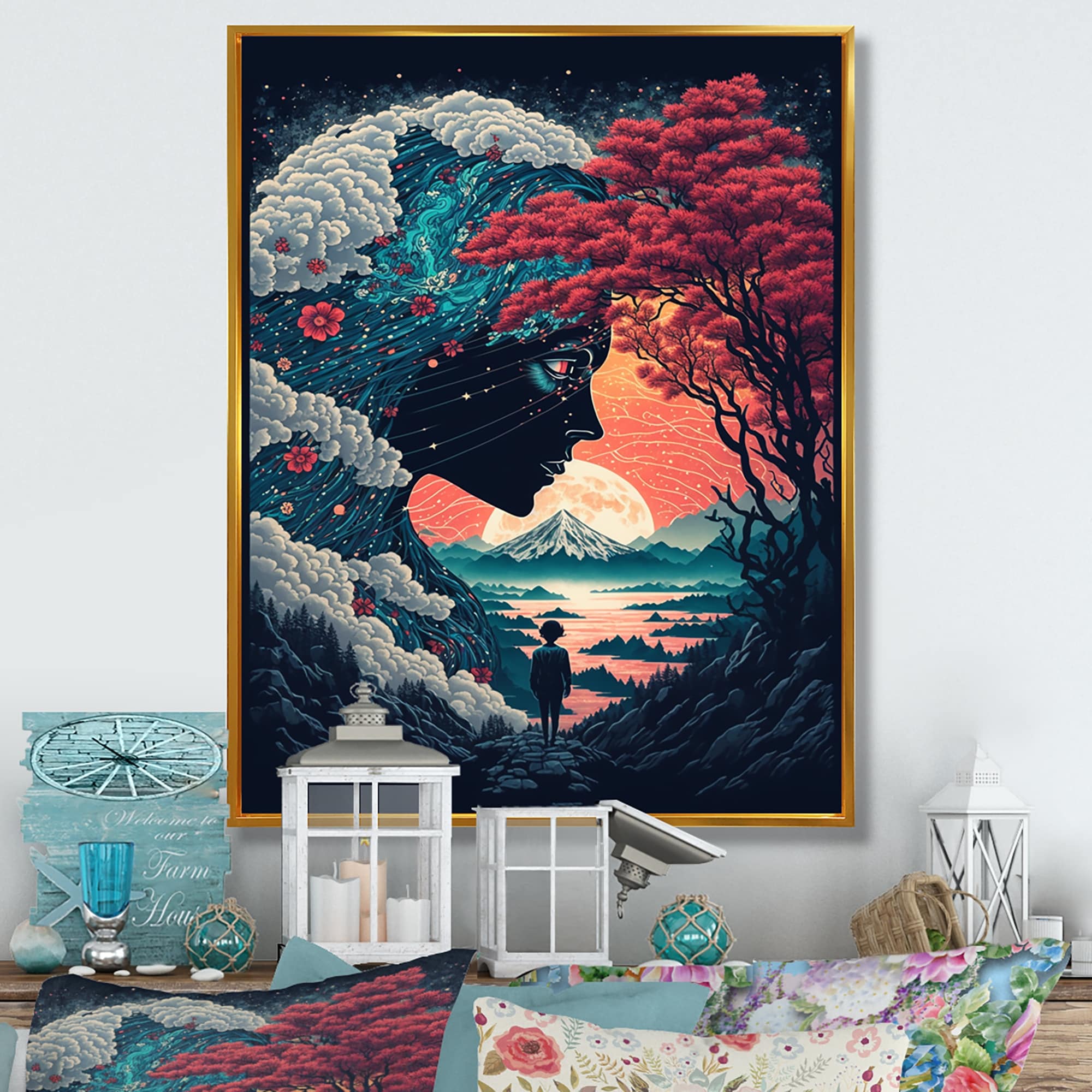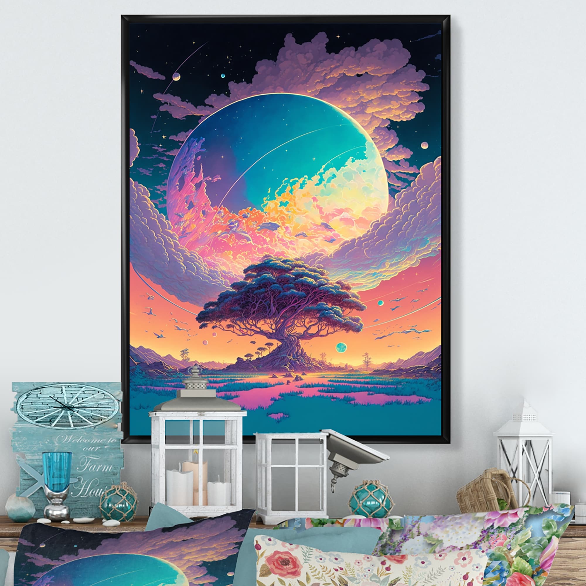 Designart "Majestic Tree of Wisdom in Pastel" Landscape Forest Framed Canvas Wall Art Print