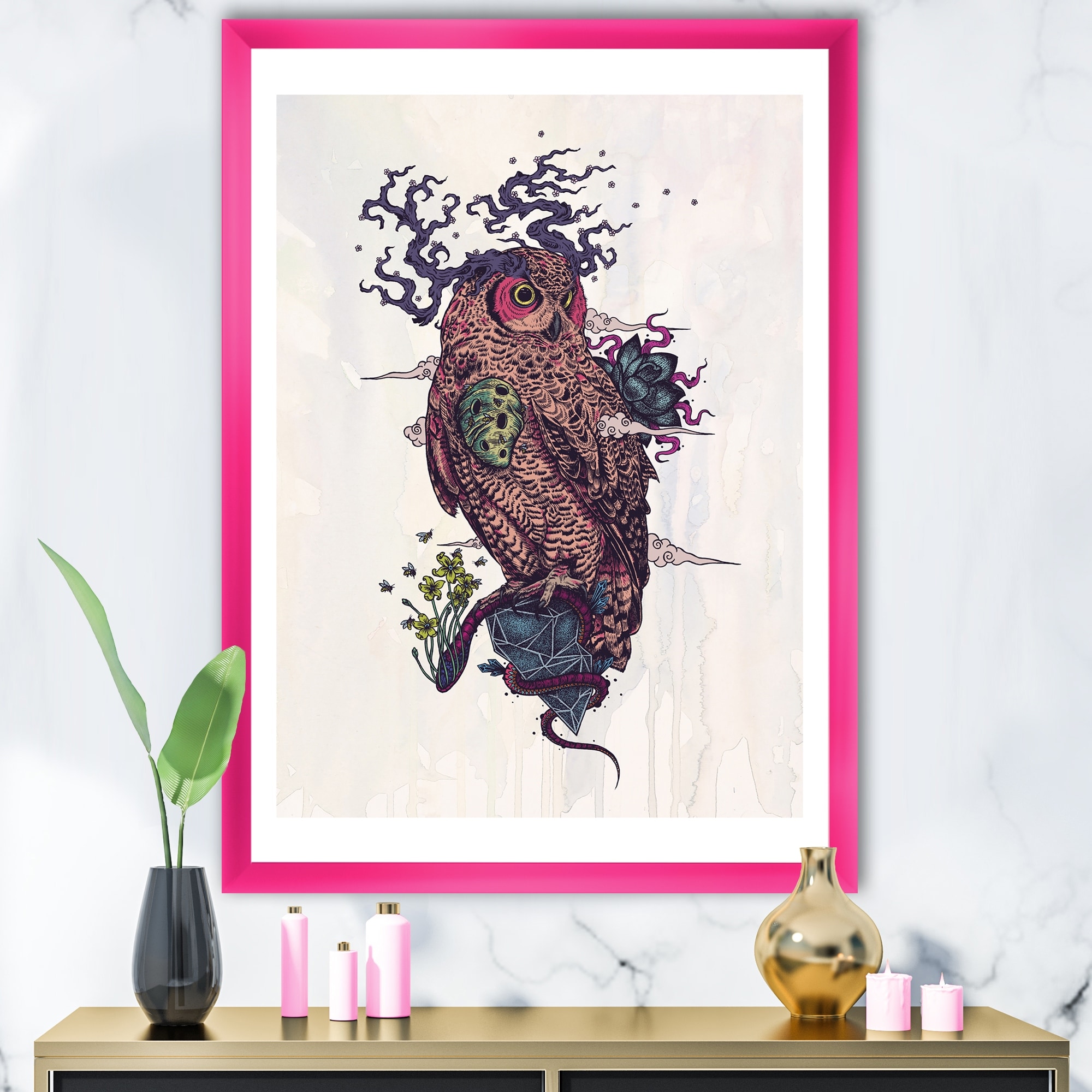 Designart "Diamond Owl Wisdom" Modern & Contemporary Framed Art Print