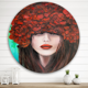 Designart 'Portrait Of a Young Woman With Red Flowers' Modern Metal Circle Wall Art
