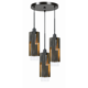 60 X 3 Watt Metal Pendant Fixture with Wood and Glass Shade, Black